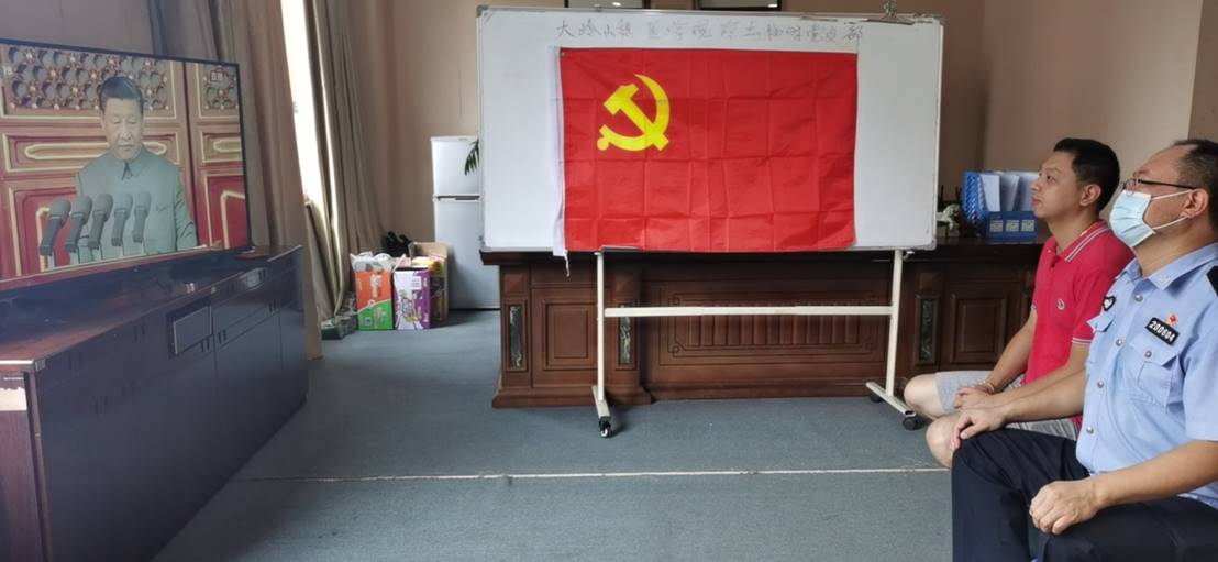 图四:教工党员在隔离酒店观看庆祝大会直播