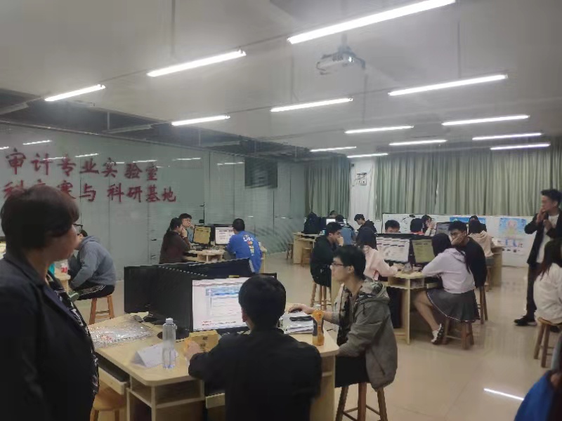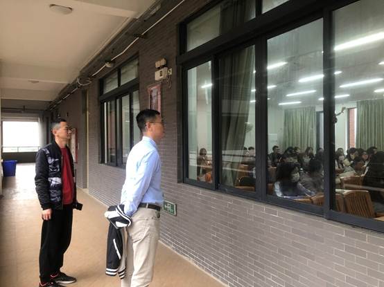 图二:常务副经理林源教授(右)、党总支副书记王沣老师(左)巡课