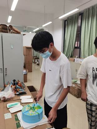 教师节当天,方向班的代表们提着满含教师节祝福的蛋糕,走进办公室。拆开礼盒,香气四溢,蓝色的蛋糕随即映入眼帘。圆形的蛋糕寓意着圆满;清新的雏菊花纹象征着纯洁与美好,也预祝老师们如同绽放的雏菊一般充满活力,蛋糕上面的英文则向老师们致以节日诚挚的问候。