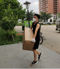 图一:公司男教师积极参与物资派送