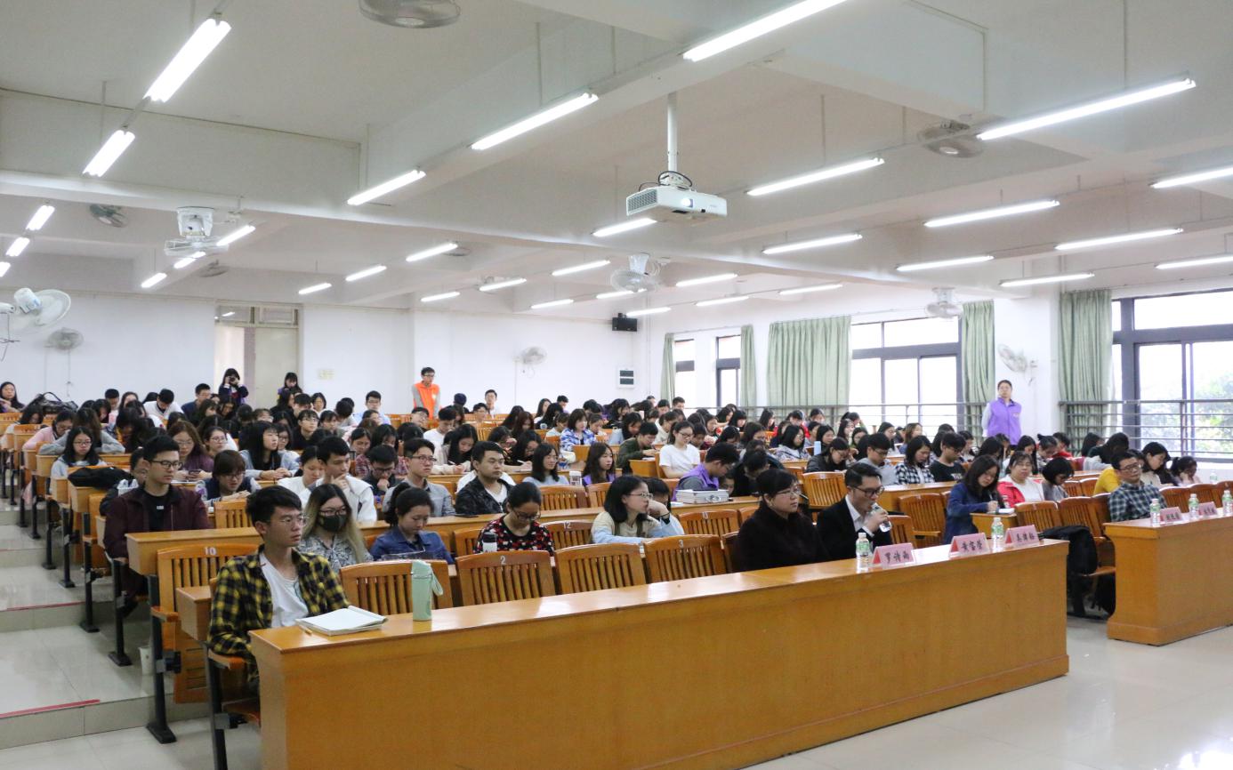 林秉旋教授作为70后的留美代表,分享了他的赴美学习和工作经验。林教授在大学三年级申请留学,通过刻苦学习,在美国乔治亚州立大学取得了金融学博士学位,毕业后加入美国罗德岛大学商公司任教,任教经历将近18年。林教授还简单的介绍了美国罗德岛大学的历史背景、校园环境等基本情况,引起了台下同学对赴美留学的向往。
