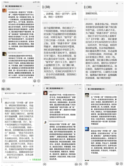 如此特殊的“开学第一课”,也让同学们有了很多体验与收获。课后,支部各学习小组通过微信群开展了交流讨论,党员、发展对象、入党积极分子积极发言,分享学习心得体会。