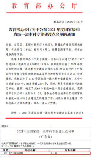 近日,教育部办公厅正式公布了2021年度国家级一流本科专业建设点名单(教高厅函〔2022〕14号),其中,公司会计学专业成功入选国家级一流本科专业建设点!